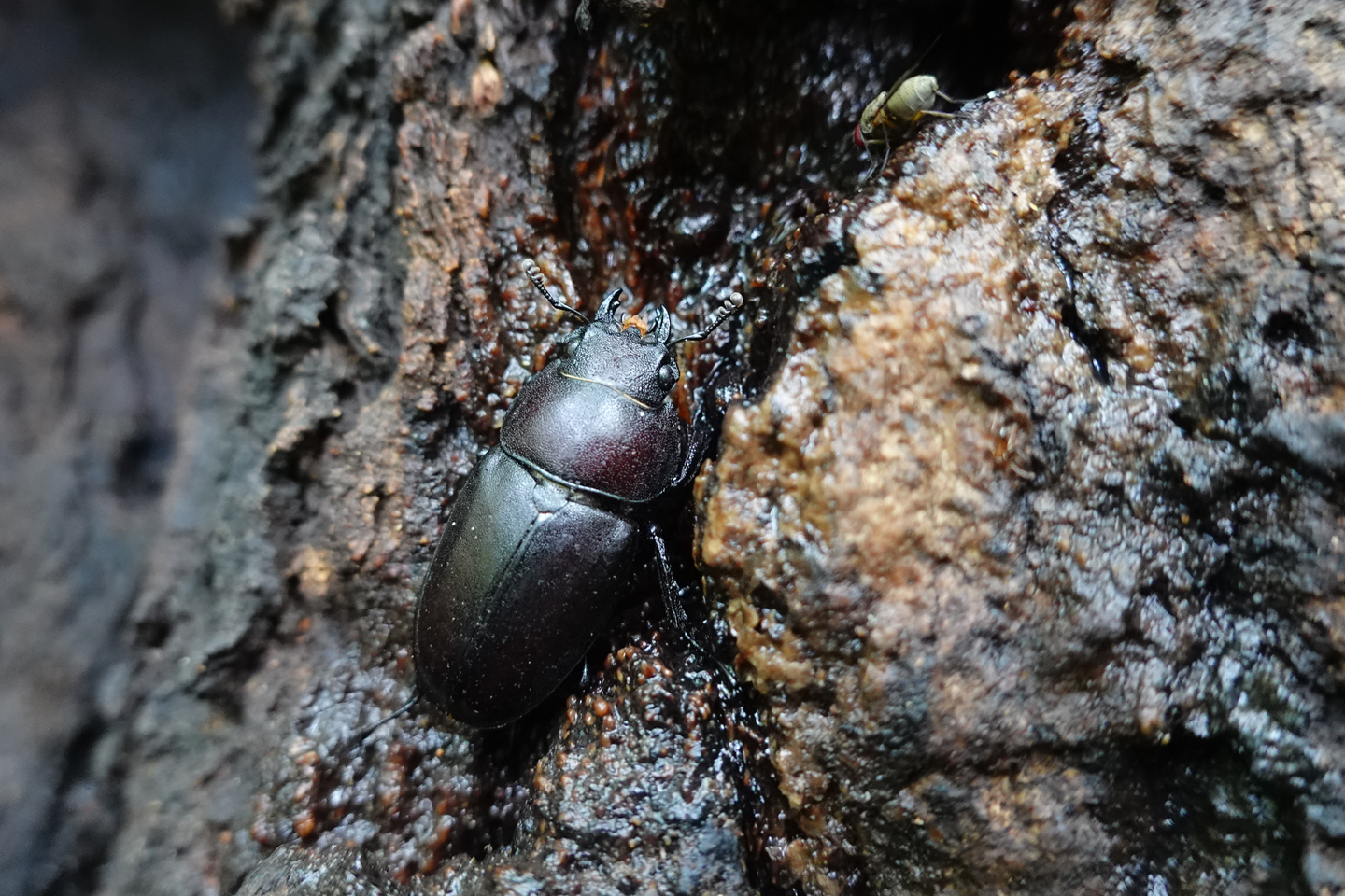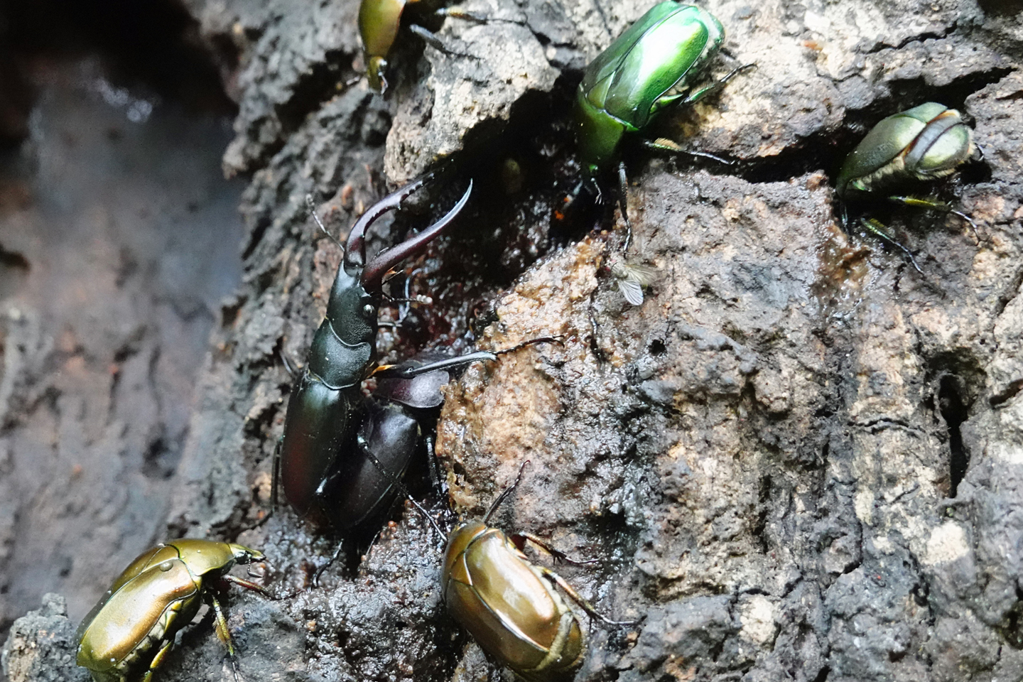 | 昼間に見つかるノコギリクワガタの多くは、カレみたいにオスがメスをがっちりガードしています。 メイトガードという行動らしいです。 腰くらいの高さの樹液にきていたカレは、こちらに気がついて目が合いました。 ちょっと手足をジタバタして体勢を変えましたが、逃げたりしようとはしません。 健気というか律儀というか、ちょっと尊敬。 ![]() 2023.7.23 豊能町 ノコギリクワガタの♀は、他のクワガタの♀よりちょっと色白(茶色)で、ウエストのくびれが少なく、紡錘型に近いです。 ![]() 2023.7.23 豊能町 ![]() 2022.8.15 神戸市北区 こういうのは蹴るしかないね。 ![]() 2021.8.8 箕面市 ![]() ![]() 2015.8.9 猪名川町 ![]() 2015.7.26 能勢町 ![]() 2013.6.30 猪名川町 |