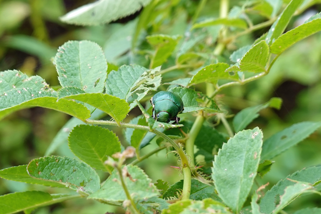 ぱっと見はコガネムシですが、こちらは光沢がありません。
