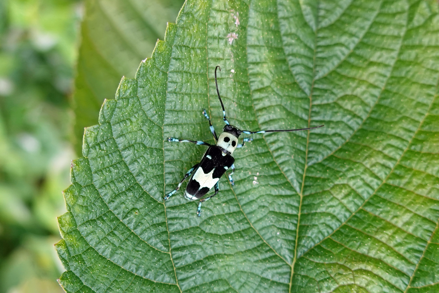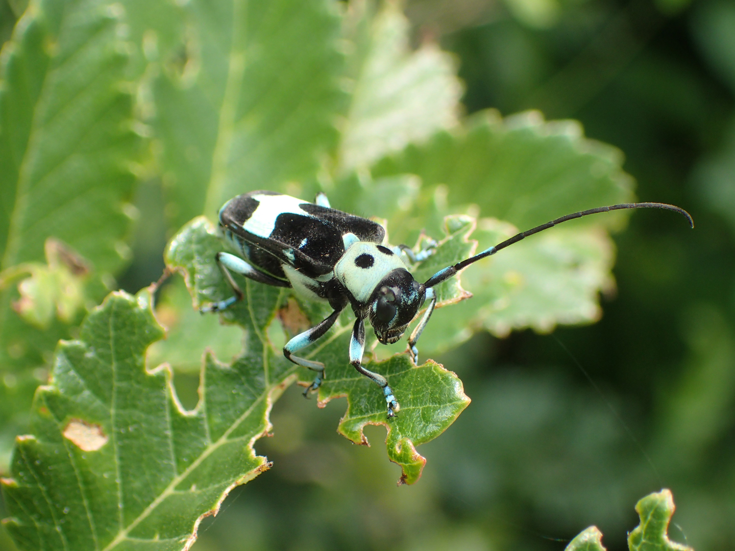 一見、パンダが燕尾服を着ているようにも見え、人気のカミキリムシ。