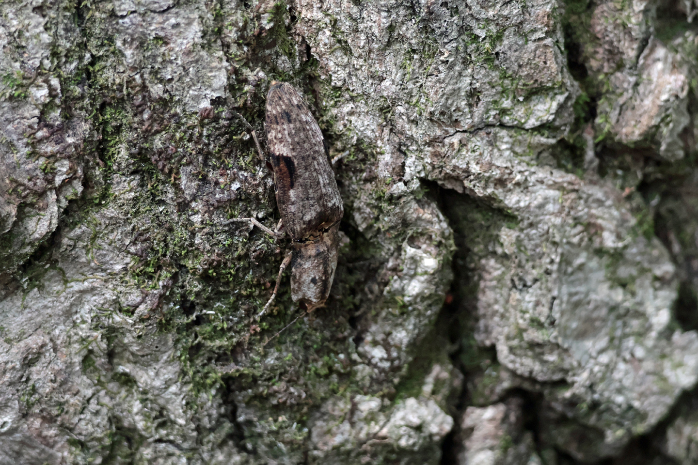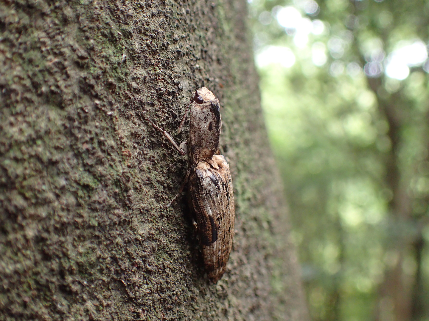 樹液近くの樹皮が動いたように思ったので、メガネを外して10㎝くらいまで近づいて、ようやく発見。