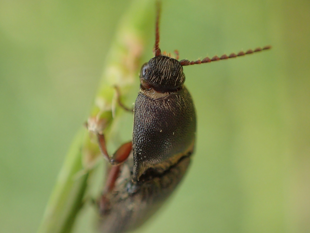 触角と脚部が赤っぽくて、前胸背板の後がとがっている。