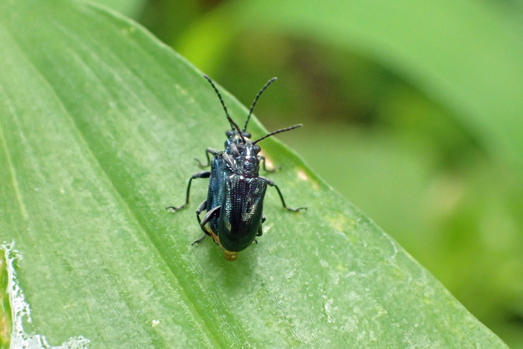 ハムシ科 クビボソハムシ亜科 キバラルリクビボソハムシ 黄腹瑠璃頸細葉虫 Lema concinnipennis