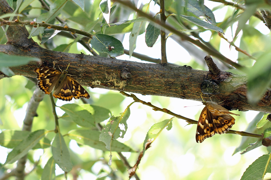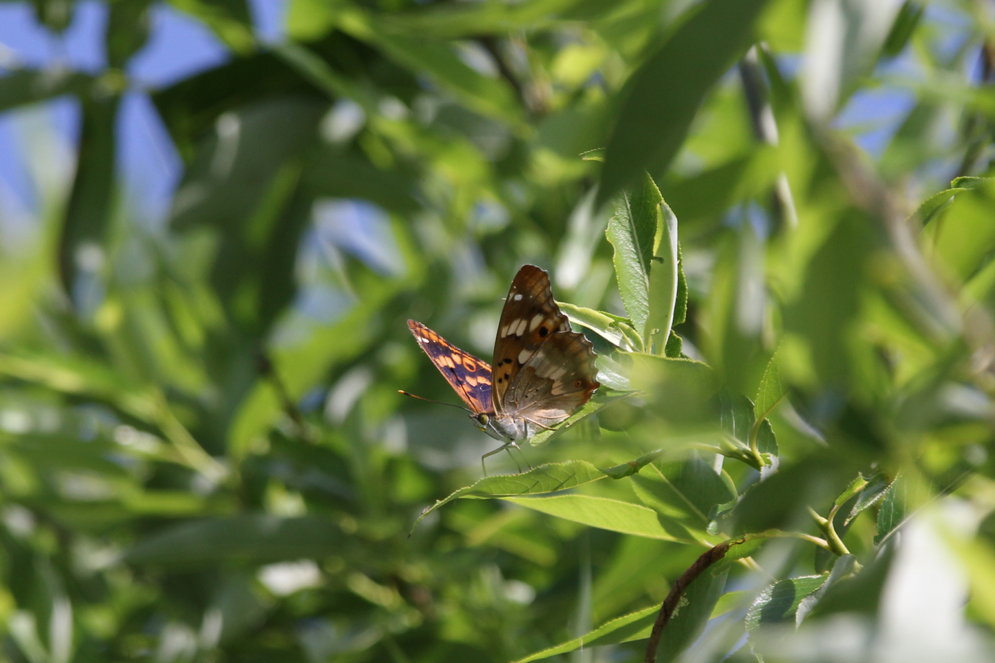 初夏の頃、河川時のヤナギや樹液でよく見かけるコムラサキ。