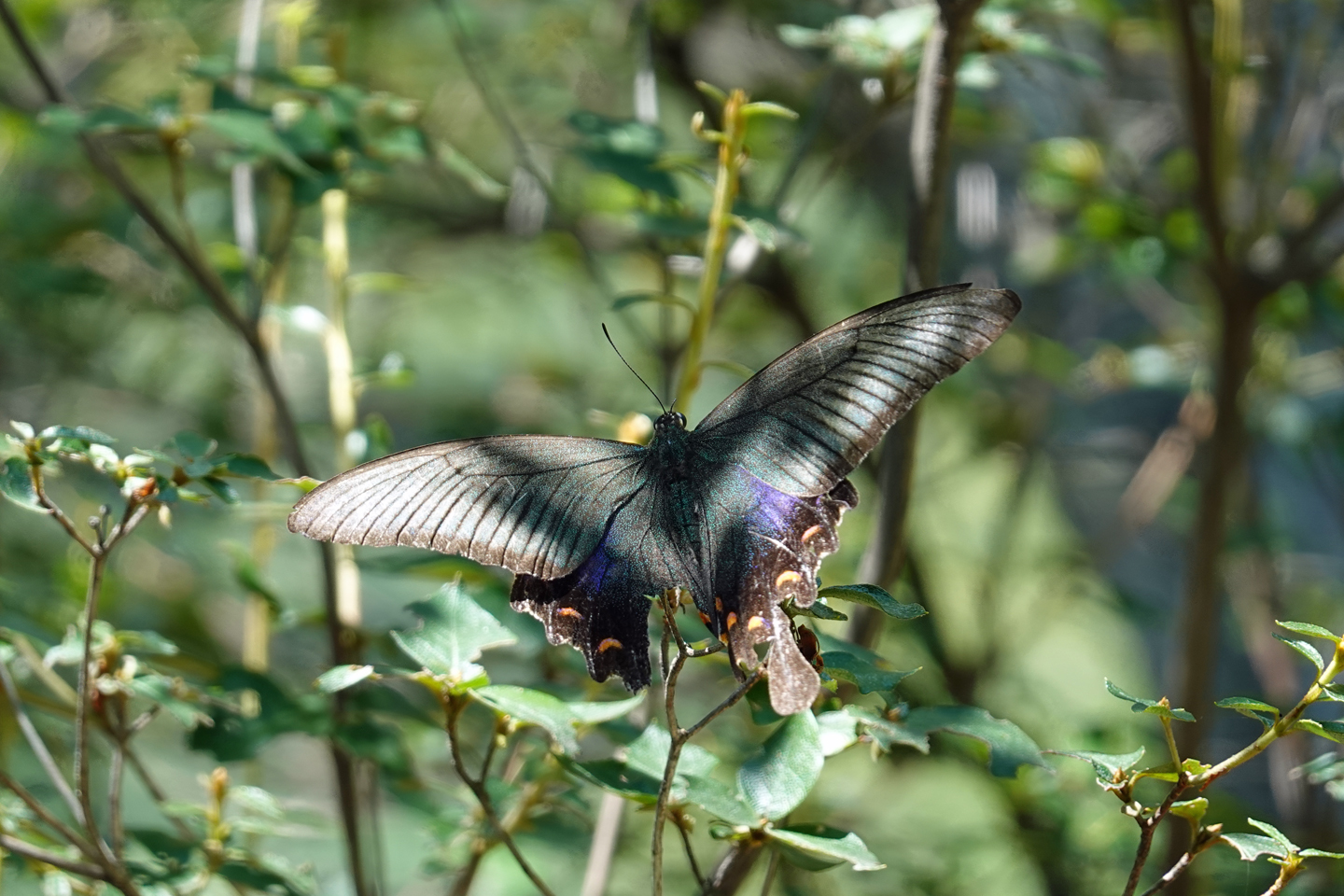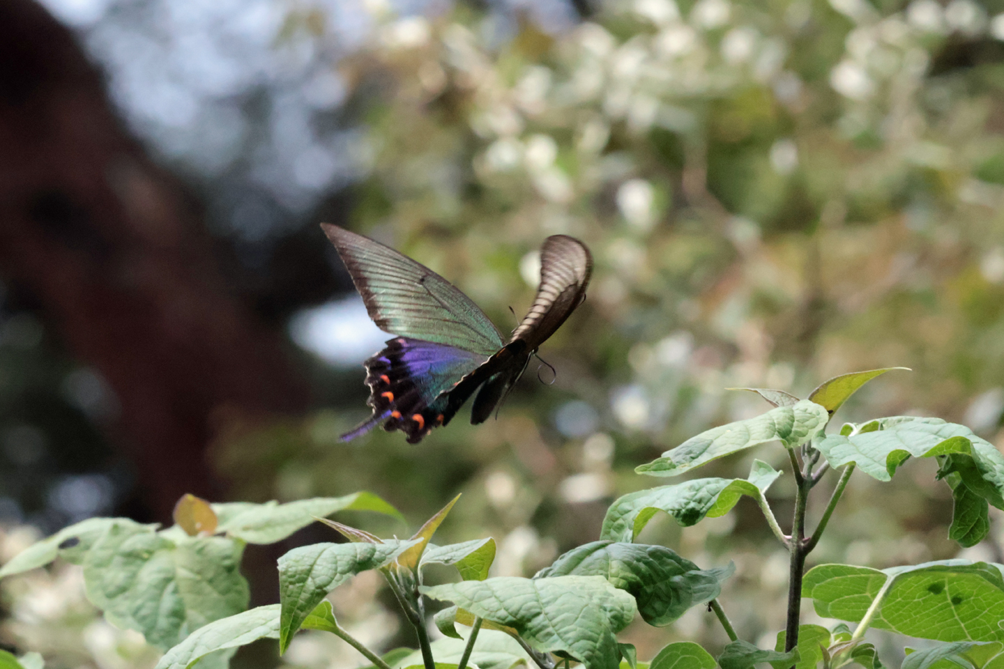 夏の終わりのカラスアゲハ。翅はもうボロボロだ。