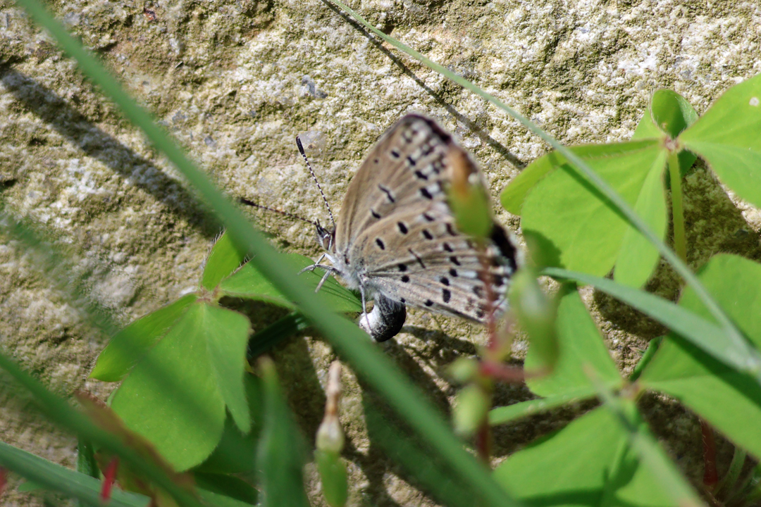 カタバミに産卵中のヤマトシジミ