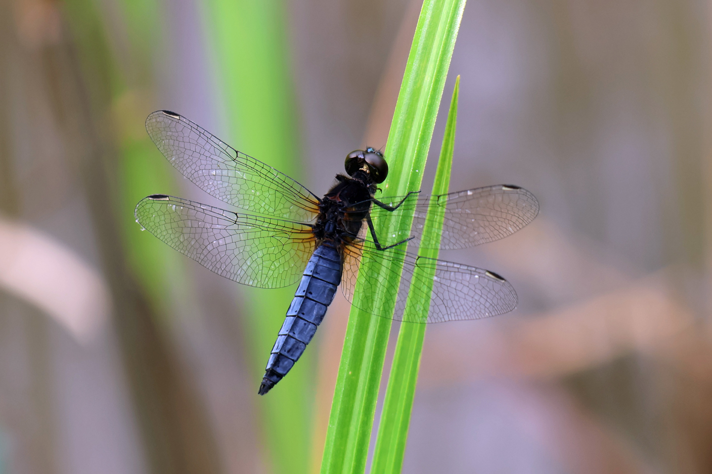 名前の通り腹部が扁平で幅が広い、一見してそれと分かる特徴があり、成熟したオスは黒ずんだ青色となってシオカラみたいな粉を吹くようです。