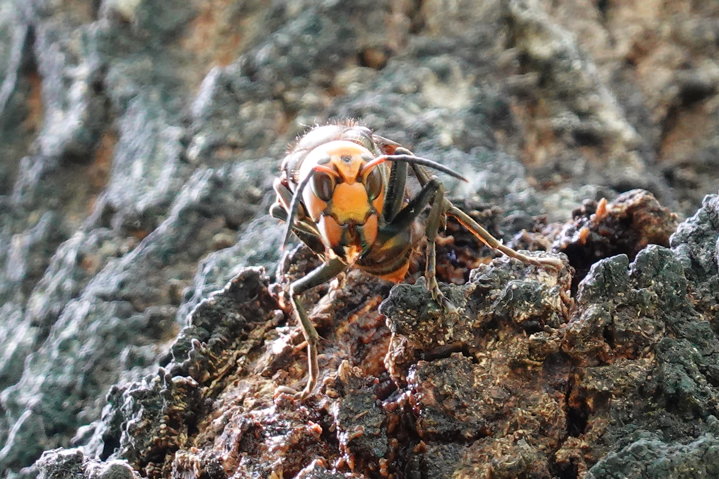 この いかつい顔。泣く子も黙るオオスズメバチです。